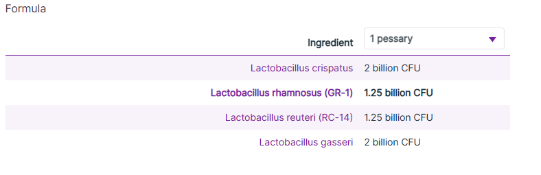 - Pessary capsules which combine probiotics: L. crispatus, L. gasseri, L. rhamnosus GR-1™ and L. reuteri RC-14™